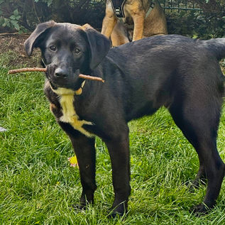 Blacky wird einmal ein Rüde in der Größe eines Labradors. Er trägt gerne Dinge umher und ist sehr